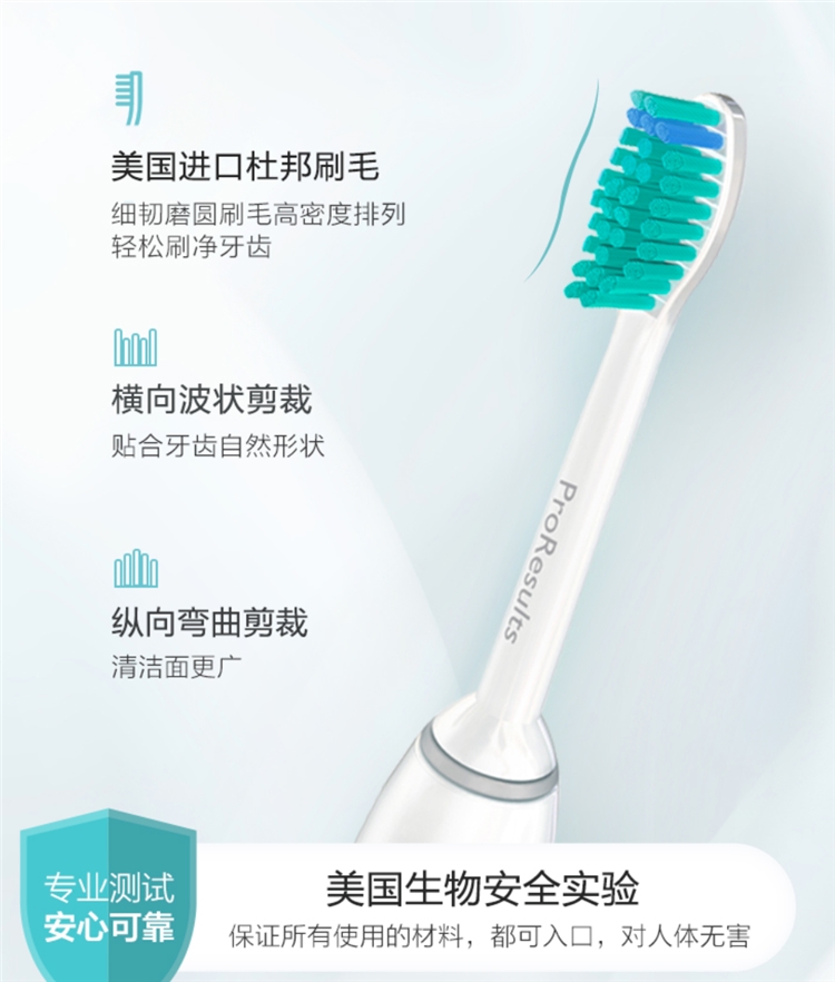 采用了3D裁剪刷头,使用起来更贴合牙齿弧度,美国进口的杜邦刷毛,细韧磨圆的刷毛高密度排列着,轻轻松松的刷净牙齿;横向的波状裁剪贴合了牙齿的自然形状,纵向的弯曲裁剪使得清洁面更广。