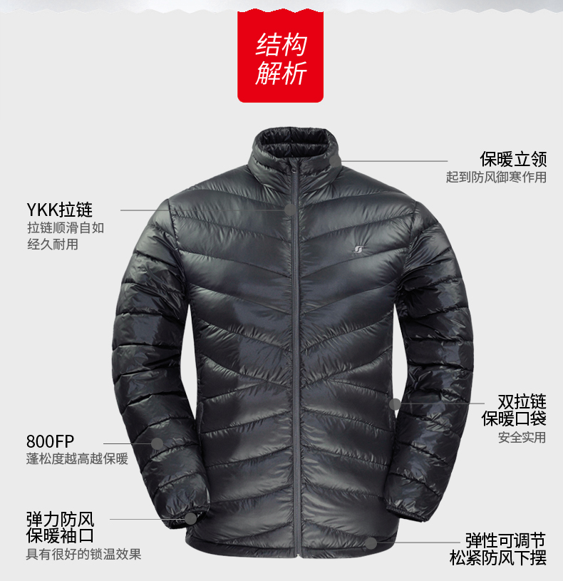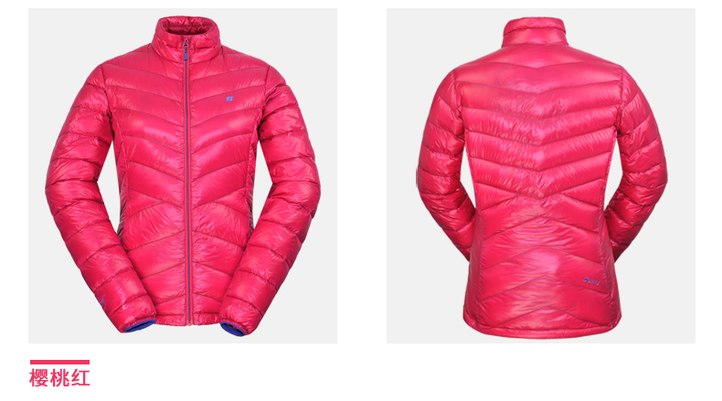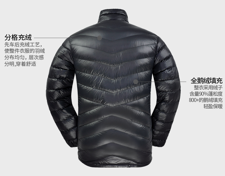充绒:都较为轻薄,女款60克(M码),男款68克(M码),均填充800蓬高蓬松度鹅绒,可以穿的又轻又暖;