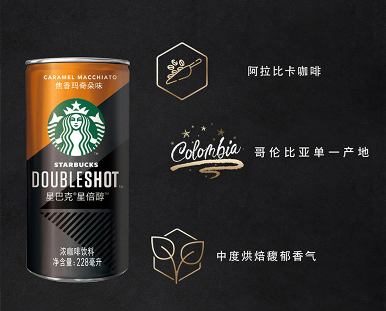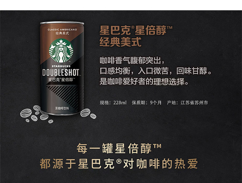 这款星巴克星倍醇浓咖啡,美国原装进口,选用阿拉比卡咖啡豆磨成咖啡,再加入适量奶味,为浓郁的阿拉比卡咖啡倍增醇滑柔和,也让口感和回味更为立体,富有层次感。
