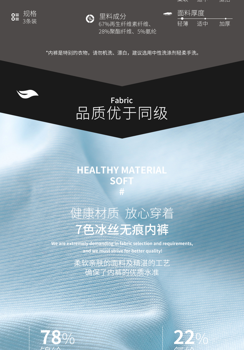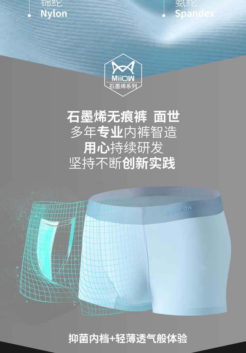 天猫猫人宏展专卖店49元,可领20元优惠券,实付29元到手,是历史低价折合10元一条;全新脱变石墨烯AAA级抗菌。舒适贴身无侧痕裁剪,送运费险。石墨烯面料比较昂贵,这款产品折合10元一条,真的很便宜了。小编买过穿着丝滑舒服