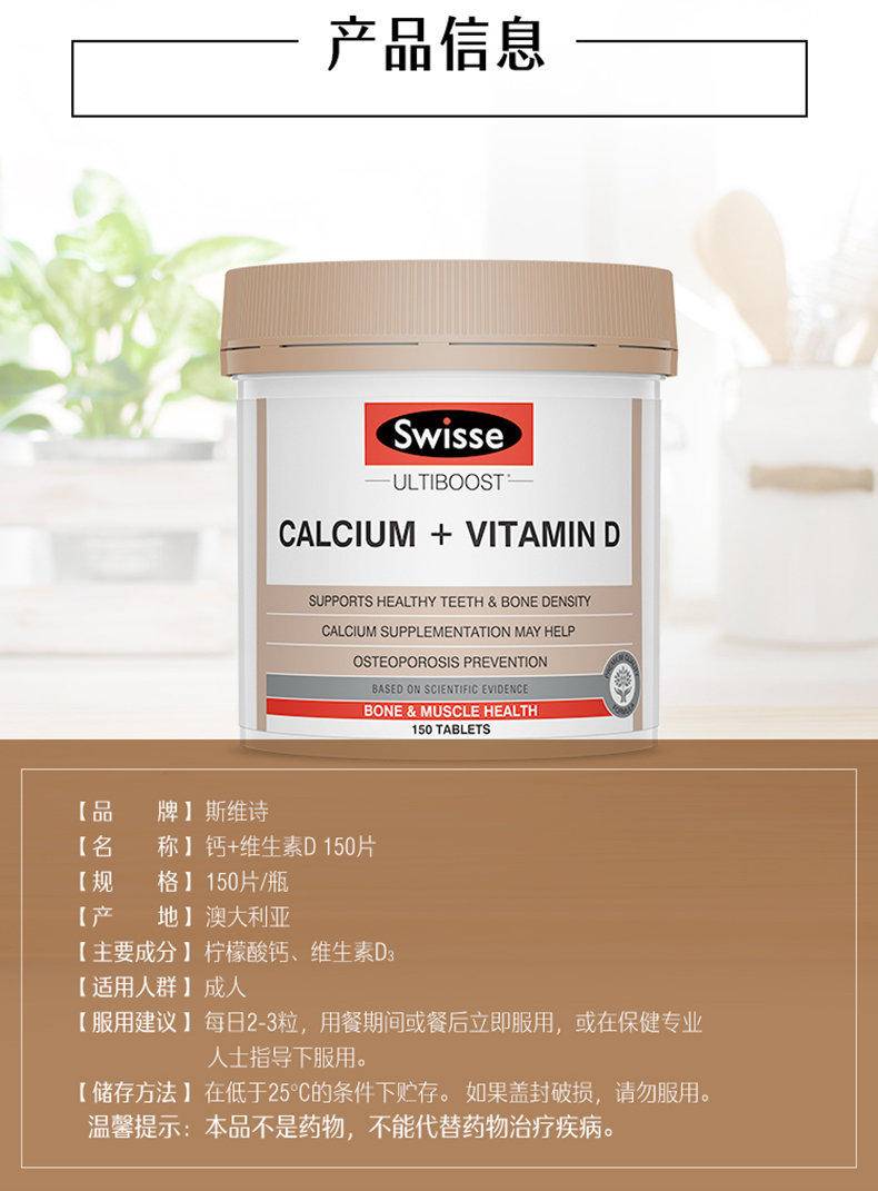 天猫孚瑞盈海外专营店89元,下单立减10元,可领10元优惠券,实付69元到手,swisse 钙+VD 柠檬酸钙片,含有天然钙和维他命D3,维他命D3协助钙质吸收。能够防治骨质疏松、骨折、腰酸背痛、抽筋、驼背、高血压、失眠、痛经、情绪不稳定等症状,调节心脏节律,有助于维持正常血液凝固,预防儿童佝偻病,成年人软骨症和骨质疏松,对中老年人的身体具有明显改善作用。规格150粒