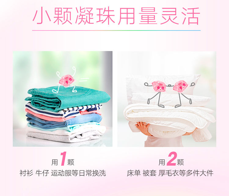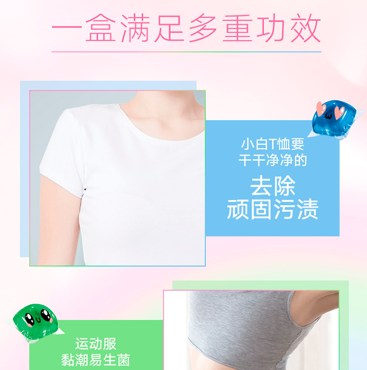 一颗满足多重功效,99%除菌除螨,中性温和,简单一抛轻松洗衣,无需剪开,直接丢入洗衣机,外膜遇水,可溶无残留,去除顽固污渍,贴身衣服,要柔软护衣,小颗珠用量灵活,轻松洗衣,清新活力香,衬衫,牛仔,运动服等日常換洗~