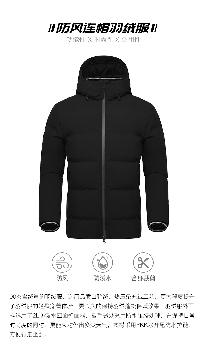 在款式和在细节方面,运动版型,方便冬季里面加衣服,上身也更舒适。高领一体连帽,帽口有弹力设计,搭配独立抽绳,能完全保护好脖子,不会漏风。收紧抽绳后,除了能防风保暖,还不影响视野。