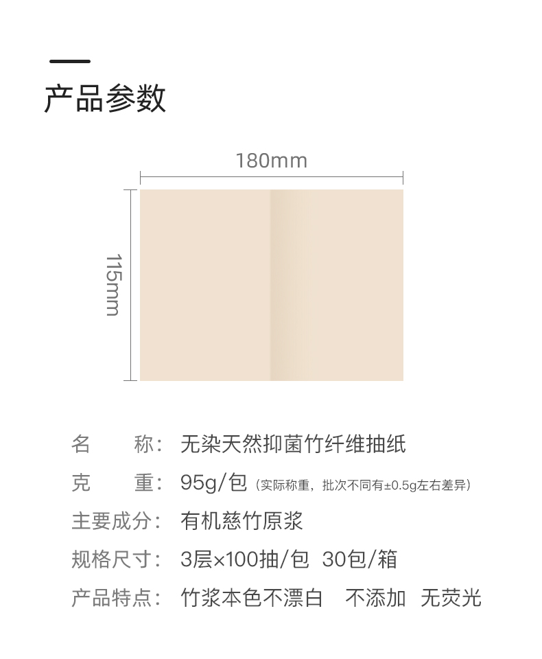 • 小米众筹爆款 无染 食品级 竹纤维抽纸 3层*100抽*30包