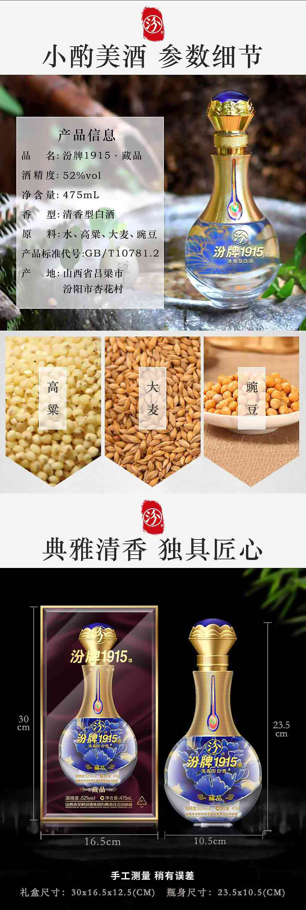 汾酒是我国清香型白酒的典型代表,工艺精湛,源远流长,素以入口绵、落口甜、饮后余香、回味悠长特色而著称,在国内外消费者中享有较高的知名度、美誉度和忠诚度。