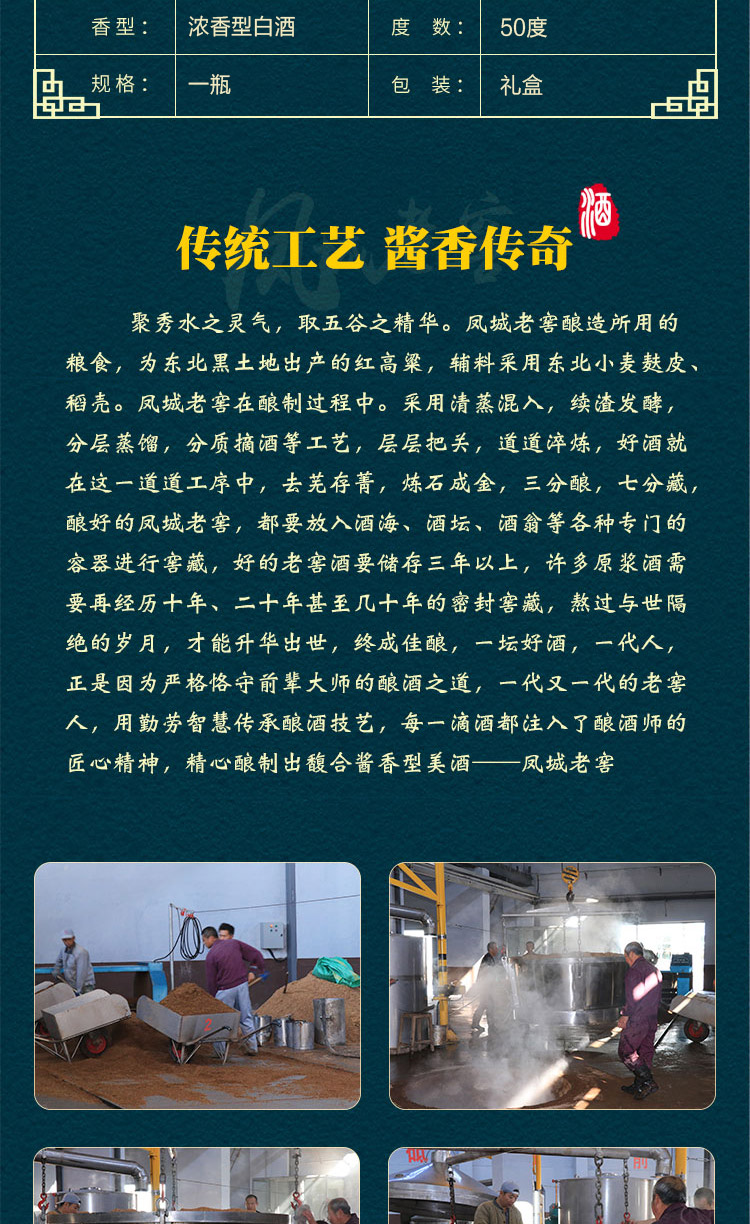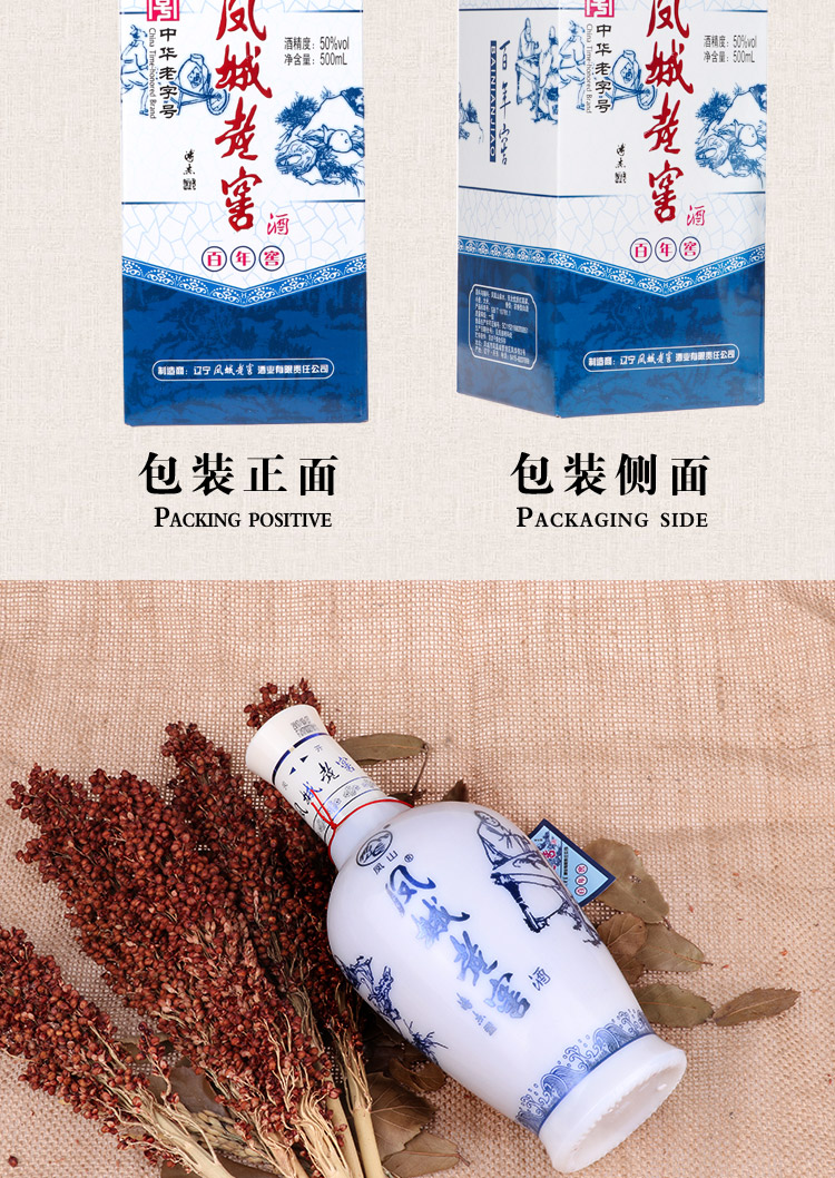 凤城老窖是中华十大文化名酒之一,辽东第一名酒,以麸曲酱香,口感纯正著称。辽宁省凤城老窖有限责任公司于1905年始建而成,由爱新觉罗·溥仪皇帝之弟亲笔提名“凤城老窖”。