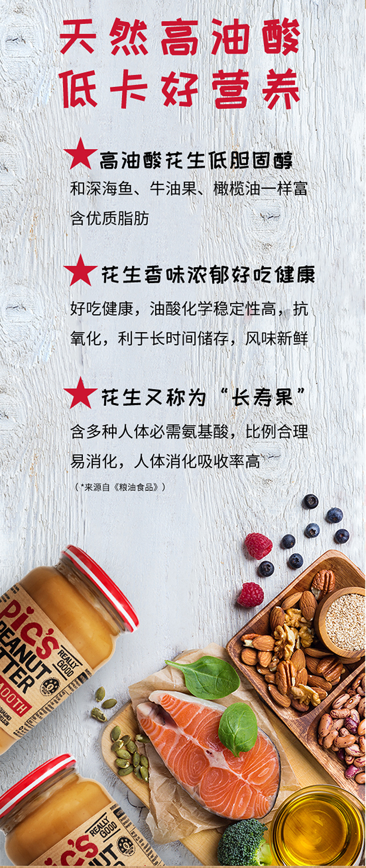 其实在国外,早餐有烤面包配花生酱的习惯,PICS不油不腻,吃着健康,这也是PICS畅销全球的重要原因之一。