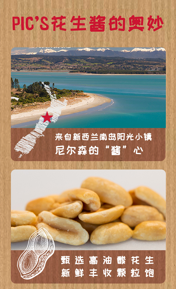 ▲Pics品牌来自新西兰,新西兰几乎是人手一瓶Pics的花生酱,有着世界上最好吃的花生酱之称,在新西兰本土的销量遥遥领先于其他品牌,备受消费者的青睐。