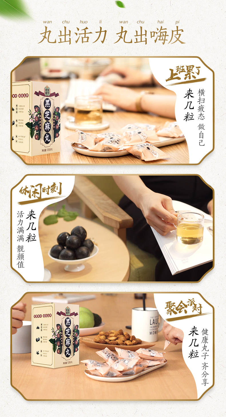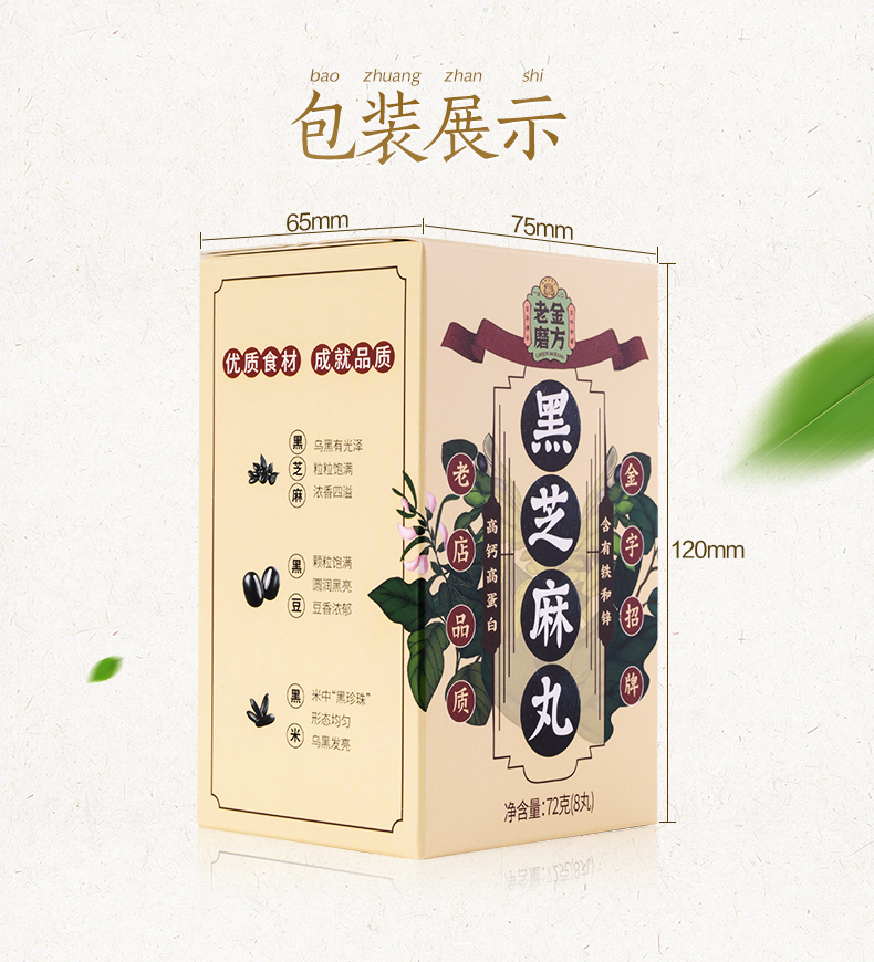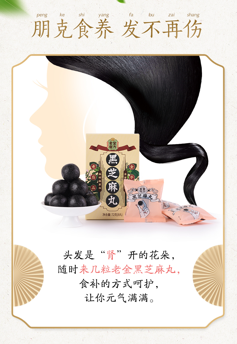 这款老金磨方九蒸九晒黑芝麻丸,由江西黑芝麻、东北黑豆、东北黑米、优质蜂蜜经过九蒸九晒之后制成,具有乌发和延年益寿的作用,不管是自用还是送礼都是不错的选择。