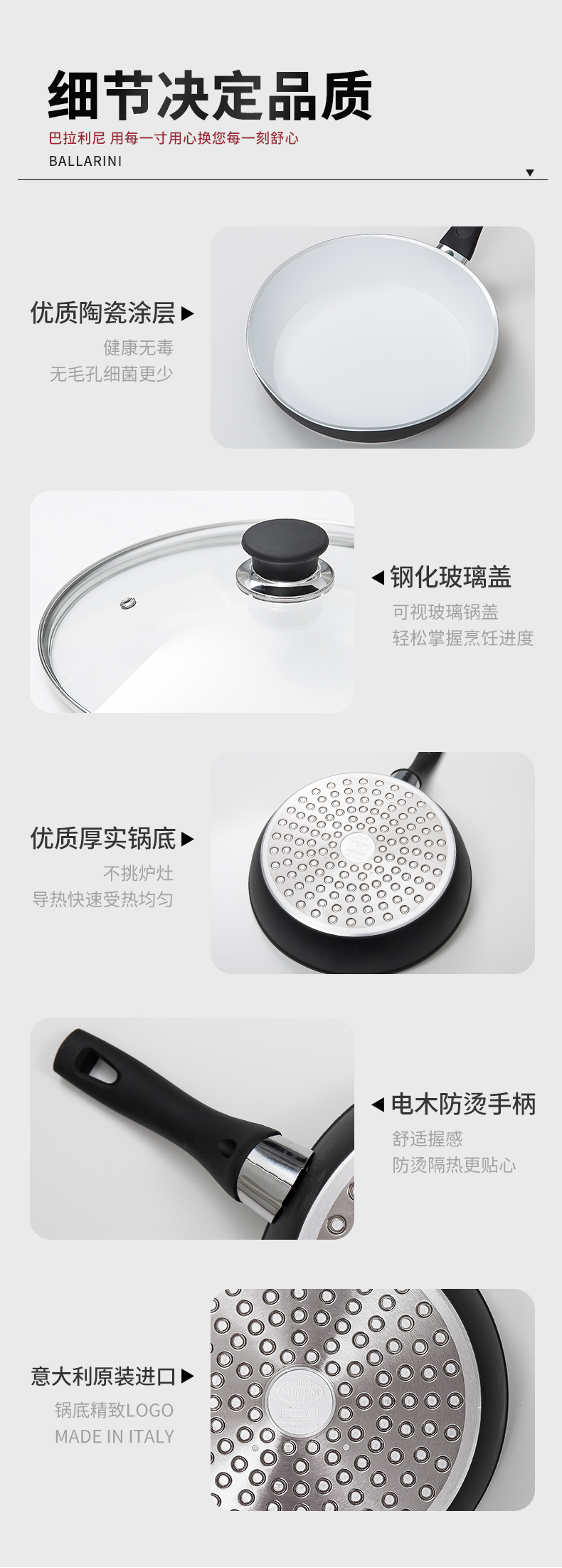 巴拉利尼起源于1889年的意大利,目前是双立人旗下品牌,所有的锅具均坚持只在意大利制造,12年曾获得testmagazin(国际知名的一家测评网站,月费10欧元)的最推荐锅具品牌。