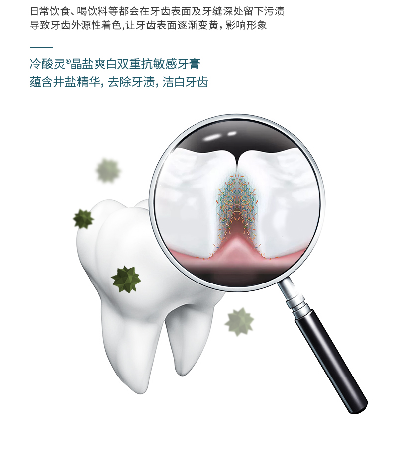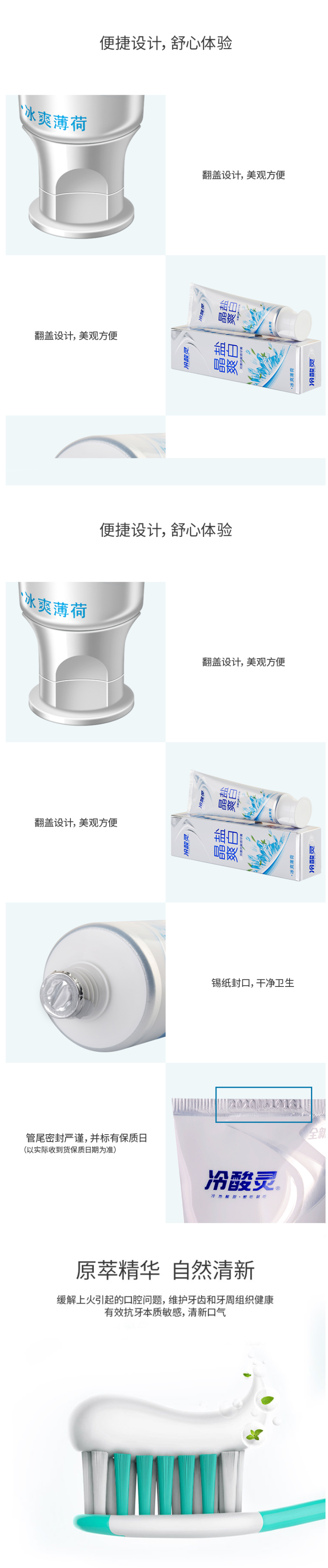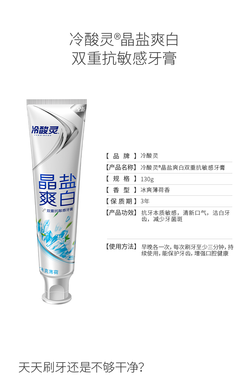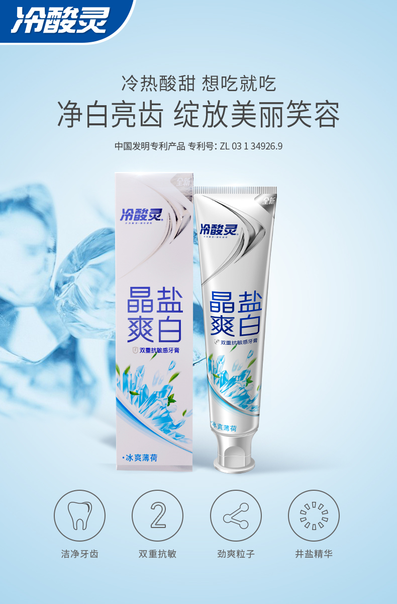 包含:冷酸灵冰柠酷爽牙膏 130g、冷酸灵晶莹爽白牙膏 130g、冷酸灵菌衡倍护敏 120g、冷酸灵茉莉茶清新牙膏 130g。