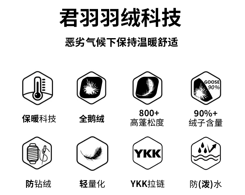 「鹅绒」800蓬鹅绒成本约是普通鸭绒的10倍,没有鸭毛的腥味,保暖效果更好;「179克 800蓬鹅绒」≈「232克 700蓬普通鹅绒」≈「331克普通鸭绒」。