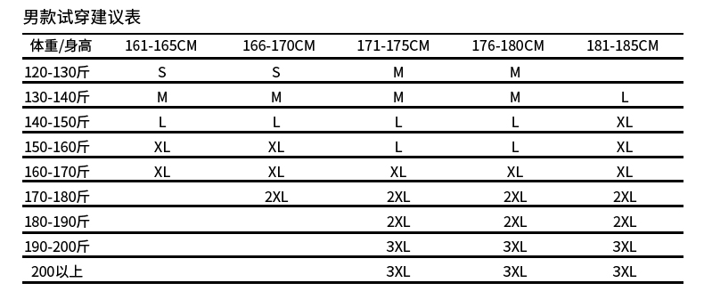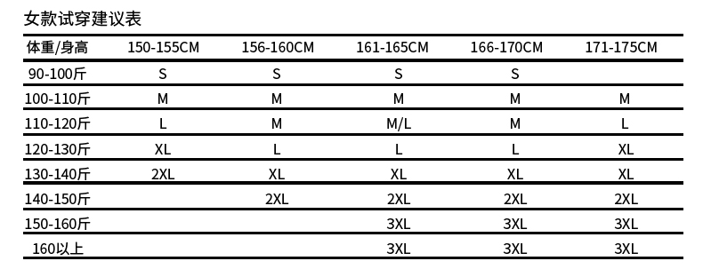 男,S码92克、M码98克、L码103克、XL码100.8克、XXL码106.6克、XXXL码120克