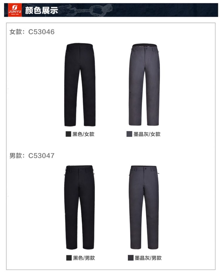 在款式和细节方面,标准版型,膝盖位置特别增加了可置换加厚羽绒的保暖包设计,全面保护膝盖部位,避免受寒;裤腰内有一层舒适柔软的毛绒,亲肤保暖无刺激,两侧是半松紧腰设计,可穿腰带,裤腰处的门襟是摁扣的;