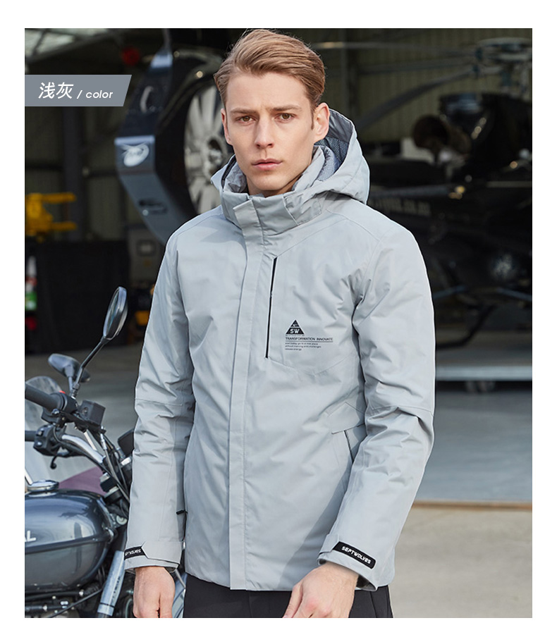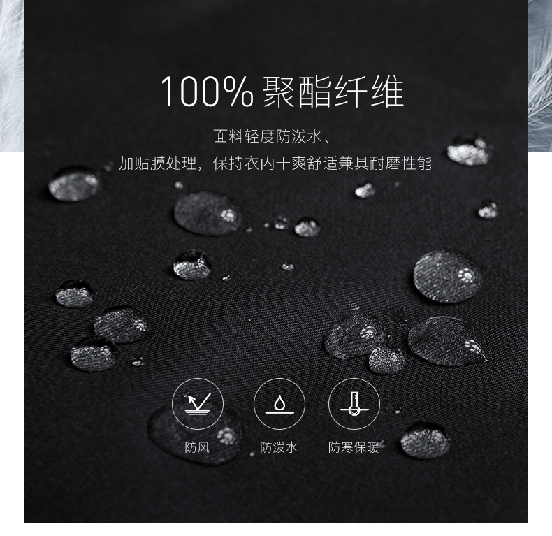 在款式和细节上,3D立体剪裁+合身版型,上身更得体不臃肿。半高领搭配防风帽设计,可以把脖子整个围住。单拉链主门襟,外层有一层封条,避免冷风直吹。