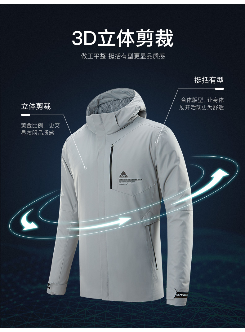 这款七匹狼男羽绒服定位是「机能服装」,属于时装+户外跨界产品。简单来讲,就是使用户外功能面料,加以时尚的造型和剪裁,适合都市日常穿着,也能应对恶劣天气与户外运动,十分符合未来运动通勤的趋势。