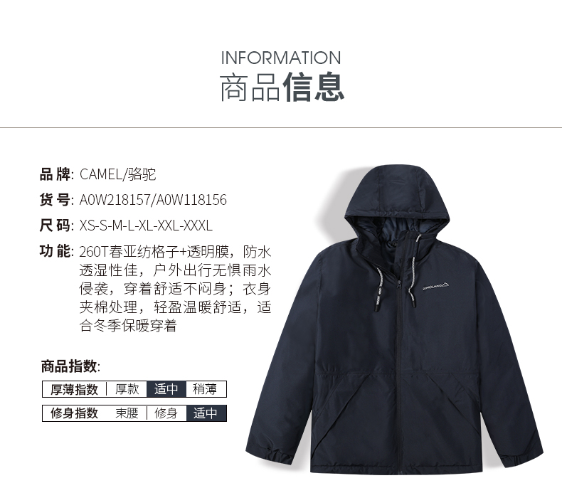 天猫camel旗舰店369元,下单立减50元,可领120元优惠券,实付199元到手,这款珠穆朗玛系列 夹棉冲锋衣,衣身轻量化设计,加厚夹棉保暖御寒,科技面料260T春亚纺格子面料+防水透气膜,具备优良防水透湿性,户外出行穿着时刻干爽舒适,防水指数可达8000MMH20。立体剪裁穿着贴身舒适,胸口珠穆朗玛山峰LOGO设计,彰显大牌品质,时尚拼色,穿着百搭。