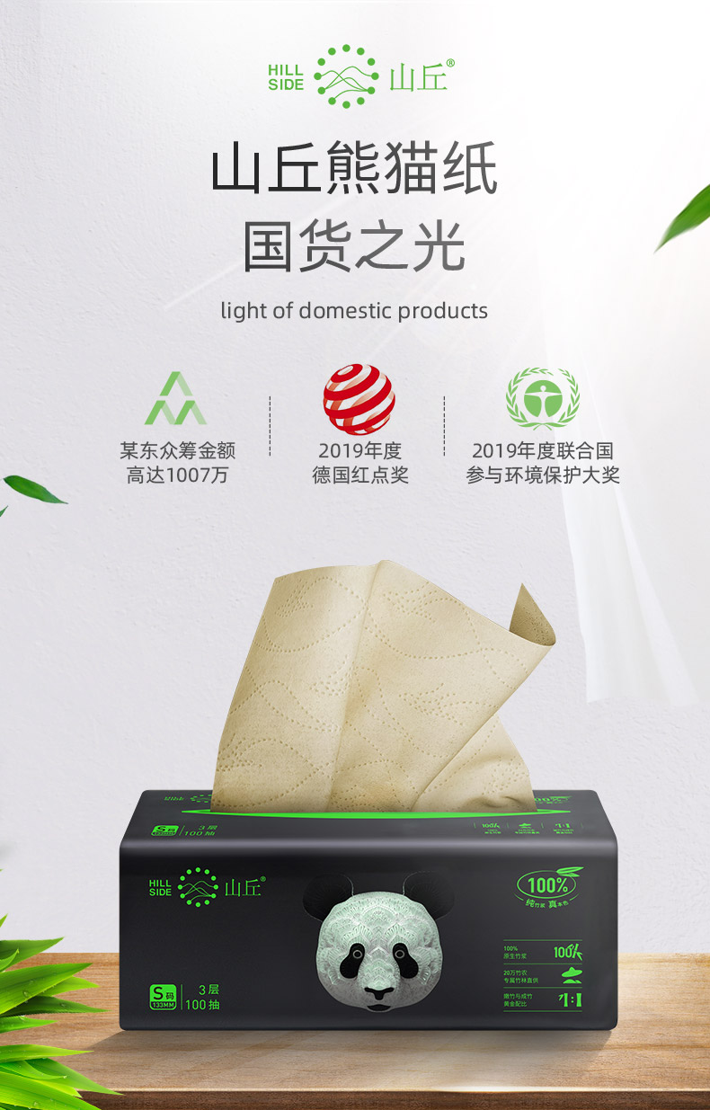 天猫山丘旗舰店31.9元,可领5元优惠券,实付26.9元到手。2019年度德国红点奖,2019年度联合国参与环境保护大奖,某东众筹金额高达1007万。通过美国&欧盟食品级检测双重认证,安全到可以“吃”。商超同款售卖,甄选大熊猫口粮--嫩竹,原生竹浆,无漂白无添加,含有“竹琨”,抑菌抗菌除螨,柔软亲肤。