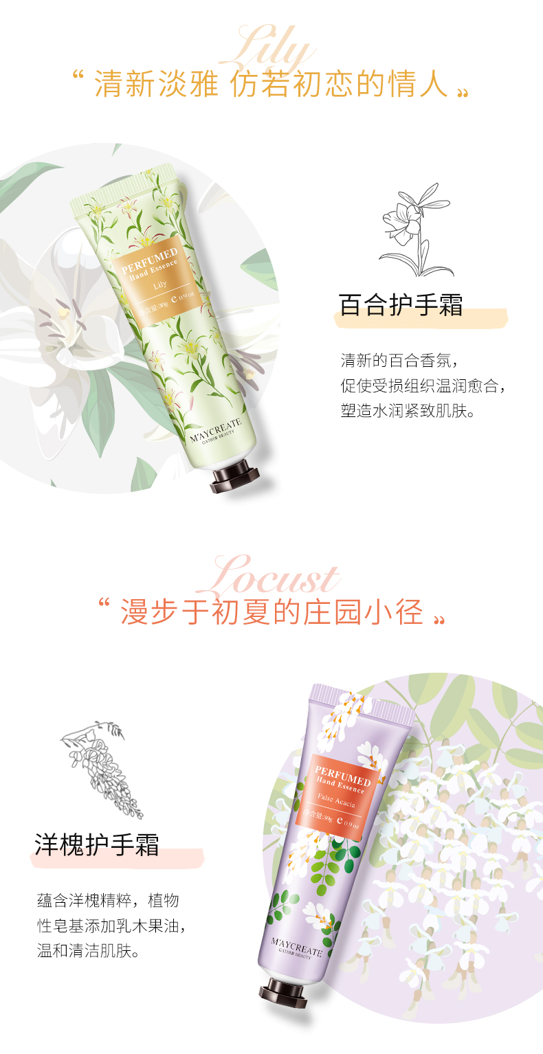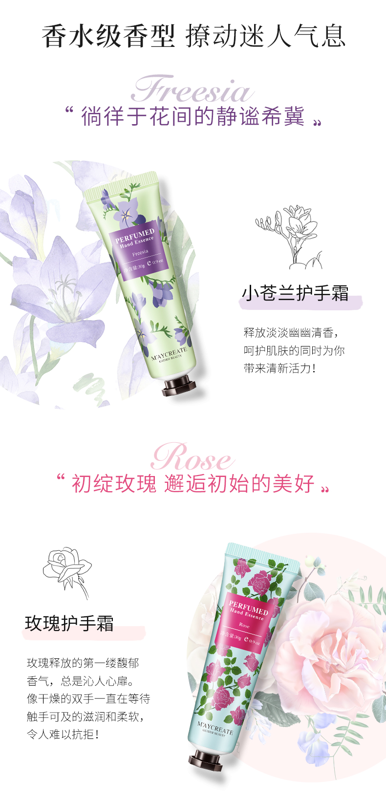 自然植物精华,花香护手霜,清爽质地,柔嫩滋养,紧致滋润,持久留香,“手”护第二张脸领券链接点此