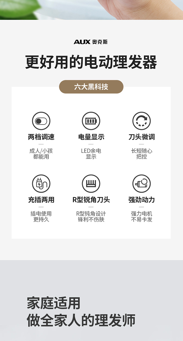 天猫奥克斯聚合专卖店0元,可领30元优惠券,实付29元到手,是正价348元的0.8折;不卡发,充电式 每天500名终身换新。奥克斯理发器,全新升级款,锁扣结构设计,操作简单,亲肤刀头,便捷安全,锋利不卡发,静音快充,一次充电使用5小时!全家适用哦领券链接点此