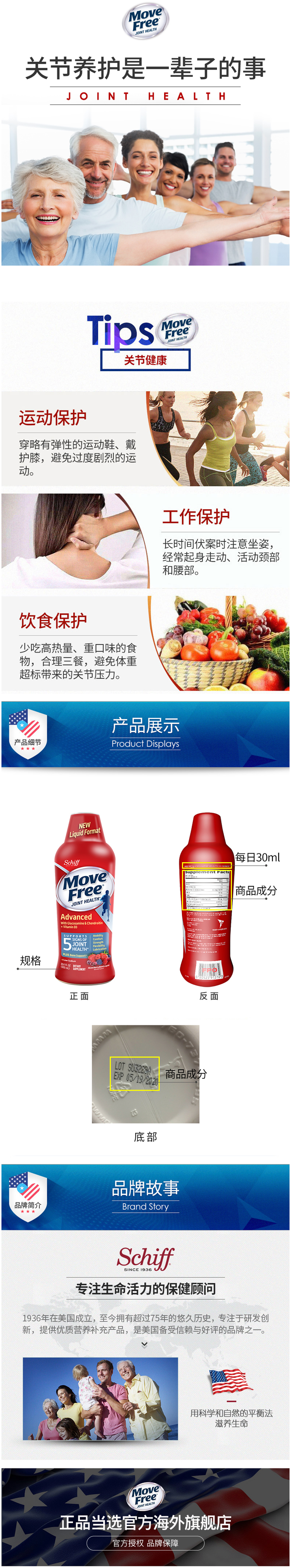 Schiff旗下最出名的保健品就是关节类的Move Free。此前推荐的Move Free氨糖软骨素都是固体小片剂,这次是刚上市的液态氨糖,美国原产,除了相同的缓解疼痛、修复软骨之外,液体氨糖的吸收更好,小分子的液体形式,对肠道无负担,渗透性更强,更易被人体吸收。