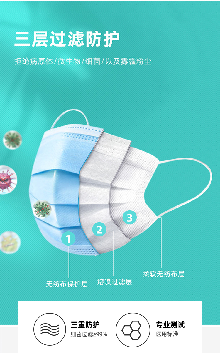 天猫虾选旗舰店19.9元,可领5元优惠券,实付14.9元到手;阿里自营工厂直供,药监认证,全程品控。三层防护,灭菌级医用口罩,贴合面部轮廓,畅快呼吸,含熔喷布阻隔污染,过滤细菌,弹力挂耳,结实舒适不勒耳,舒适透气,是值得您信赖的产品。