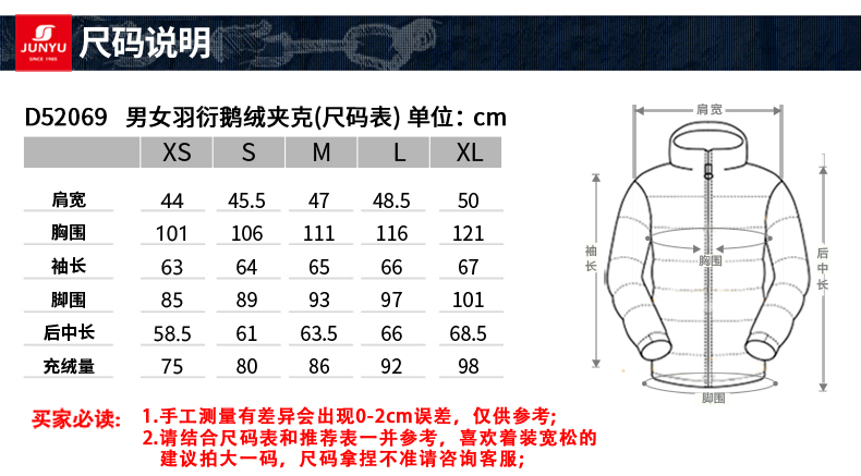 这款羽绒服的充绒量为:XS码75克、S码80克、M码86克、L码92克、XL码98克