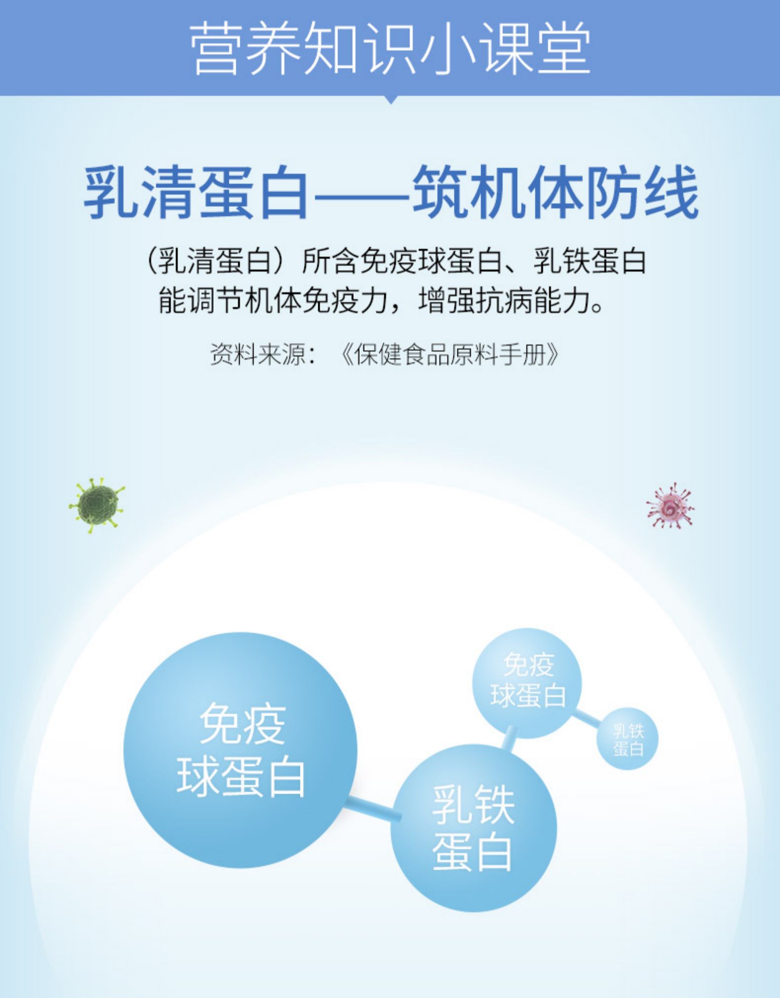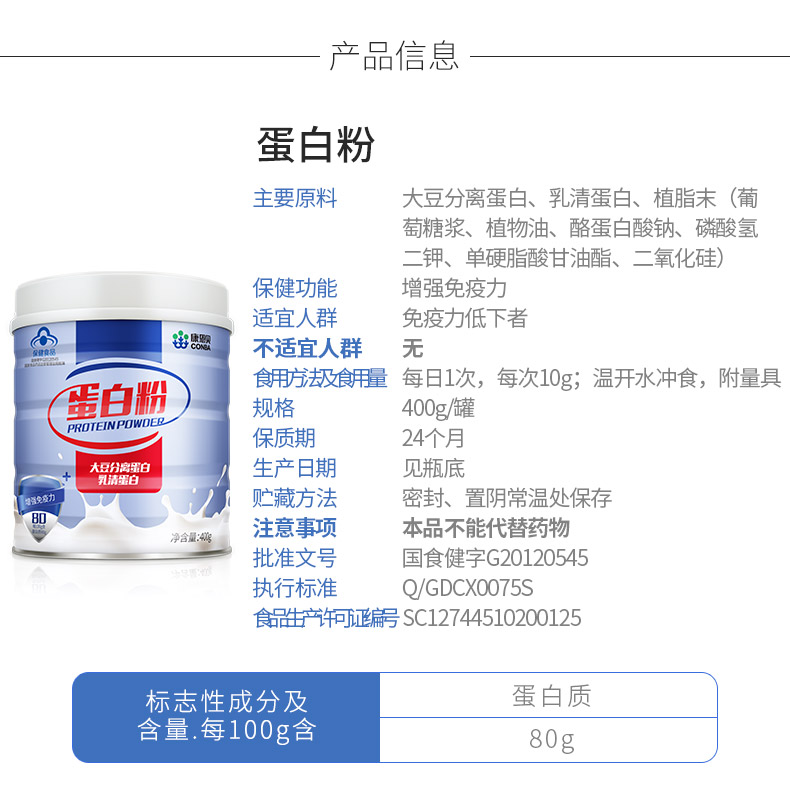 80%蛋白含量 动植物双蛋白 进口乳清蛋白。精选非转基因大豆分离蛋白+新西兰进口乳清蛋白,双蛋白配方,协同互补,同时补充人体所需9种氨基酸,增强免疫力。