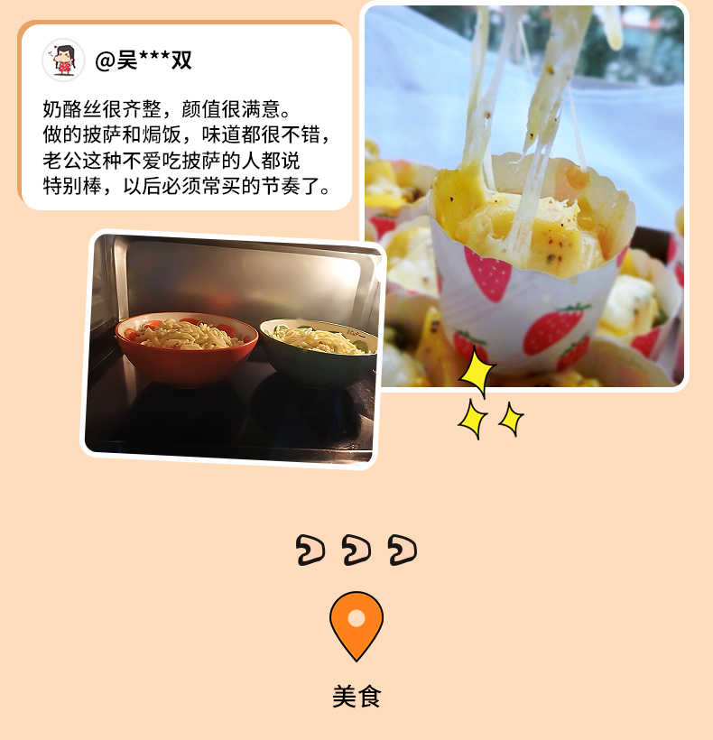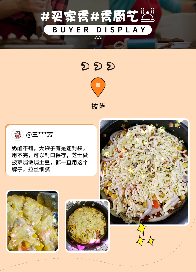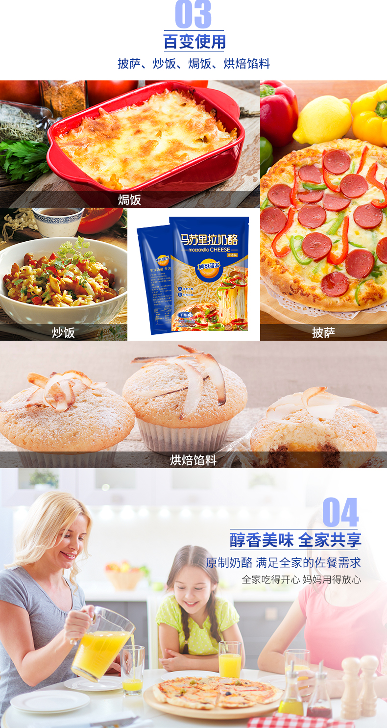 这款妙可蓝多马苏里拉奶酪,严选优质乳源,奶香浓郁,口感柔和,钙含量高,不含食用香精,细丝状设计,切丝细腻,相比于片装式的奶酪,减少了切丝的程序,使用更加方便。可以制作焗饭、炒饭、披萨,还可以当做烘焙原料,泡面的时候加上一些也会更好吃~规格为228g*3袋。