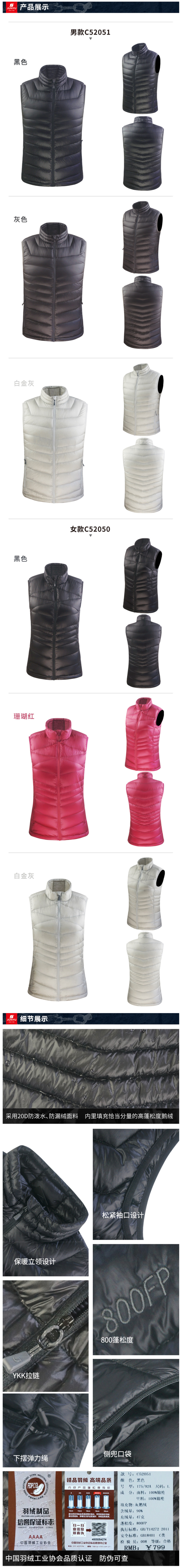 充绒:都较为轻薄,女款42克(M码),男款47克(L码),均填充800蓬90%含绒量鹅绒,可以穿的又轻又暖;