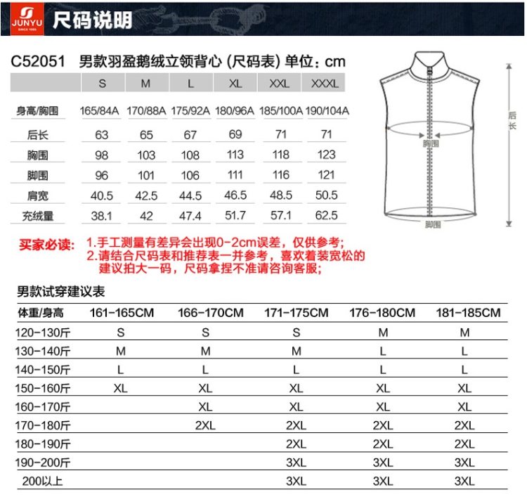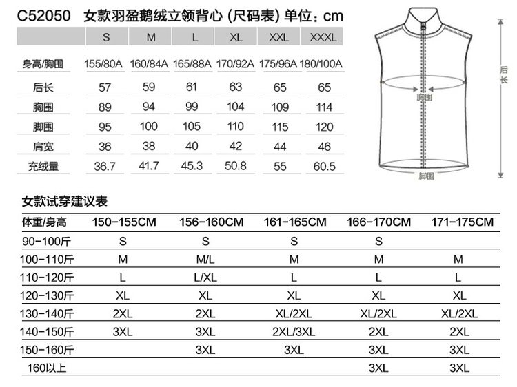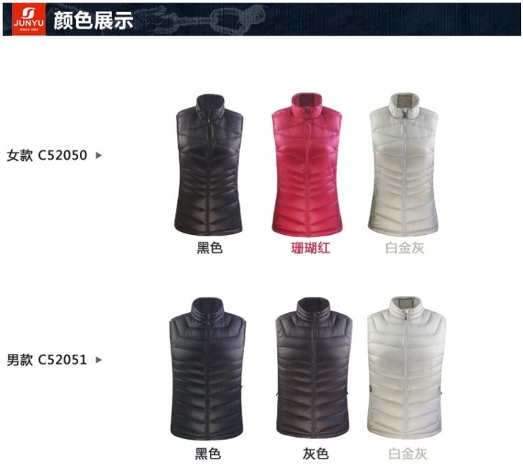 款式:立领设计,可护住脖子,男款是直筒,女款是修身;