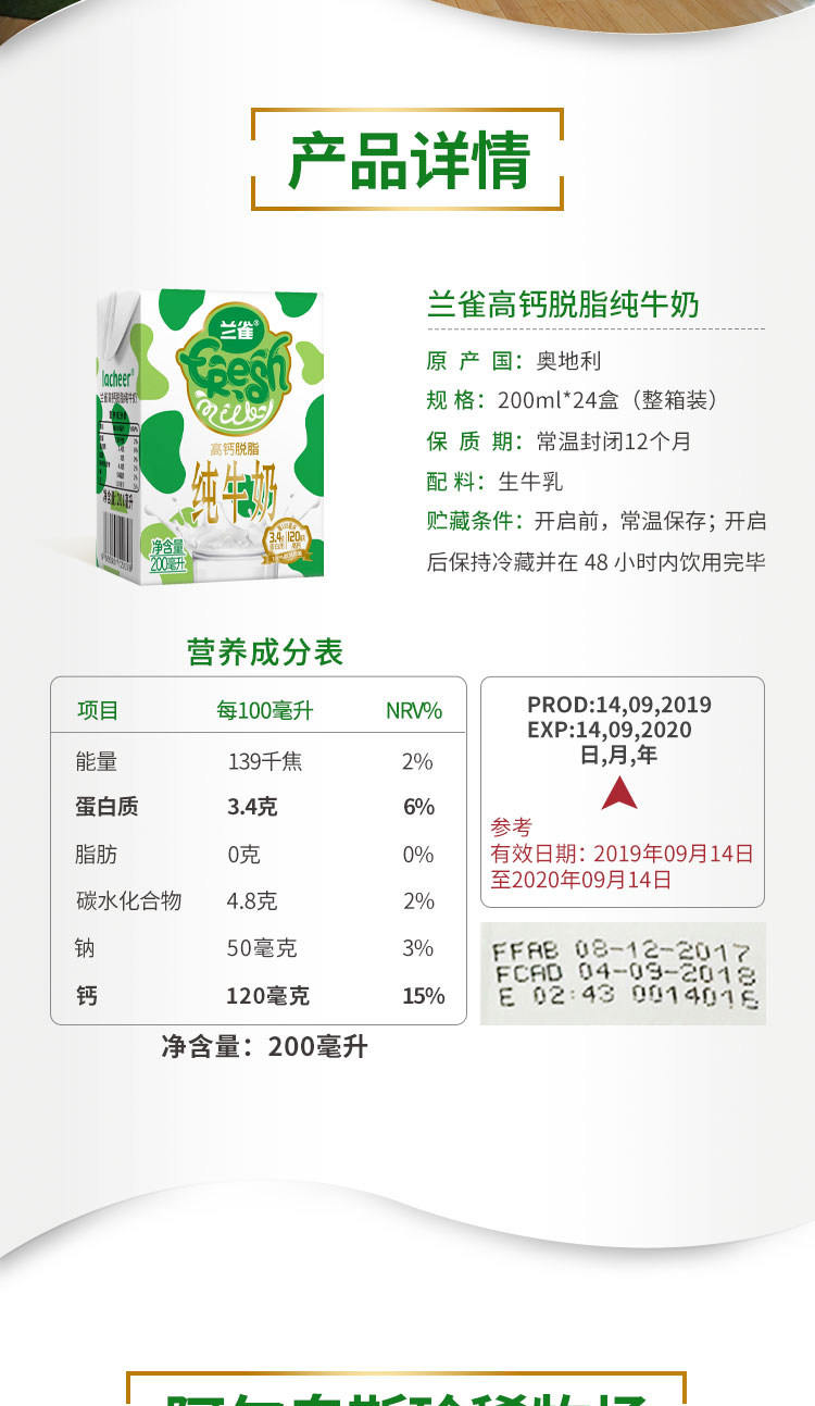 上市至今销售数量超2亿盒,德国百年乳企兰雀品牌,欧盟标准生产,德国原装进口,源自黄金牧场。百年乳企品质保证,是德国原装进口,欧盟、中国三重认证。领券链接点此