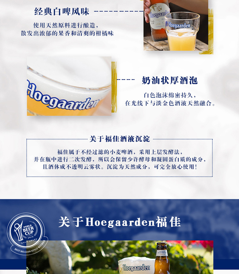 此款白啤荣获了2016年啤酒世界杯麦啤品类金奖,在国内也深受广大消费者喜爱。采用矿泉水、麦芽、小麦、酒花、芫荽以及少许橙皮制成,有清新的甜酸和苹果酸的味道,果香浓郁,麦香层层,入口有种甜甜的初恋滋味~