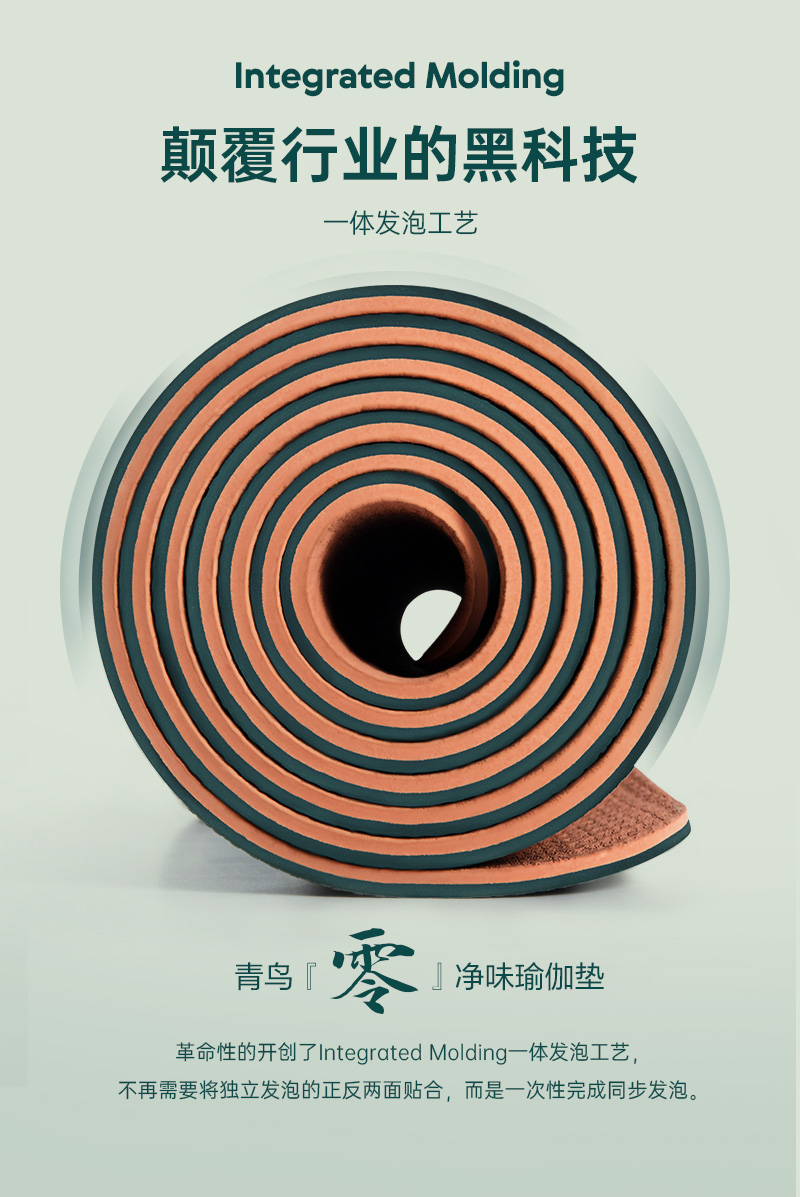 这款青鸟TPE多功能健身垫,尺寸为183*66*6/8mm,传统瑜伽垫制作是使用高温热压或胶水粘贴,将正反两面垫子粘合在一起,是瑜伽垫异味的主要来源,青鸟瑜伽垫革命性的开创了Integrated Molding一体发泡工艺,一次性完成同步发泡,采用高分子TPE材质,不含甲醛,通过瑞士SGS认证,蜂窝结构,双面稳定防滑,拥有更好的缓冲性能。拥有磨砂横纹,运动时不易滑动。