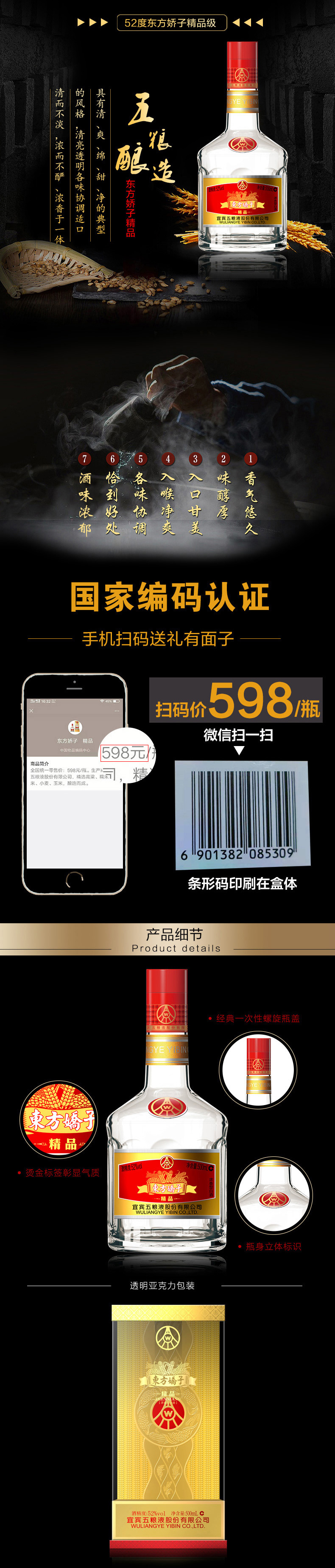 天猫超市,20-25日 天猫年货节,¥359元 年货价,-10元优惠券,-299-45元 返现活动,=304元到手价,天猫超市直送,质量有保证,随酒还赠送精美亚克力礼盒,五粮液东方娇子是浓香型白酒,精选高粱、小麦、大米、糯米等,产地四川省宜宾市。这款酒拥有清、爽、绵、甜、净的典型风格,酒水轻量透明,清而不淡,浓而不酽、浓香于一口。每瓶街上都带有二维码,扫码显示价格,搭配烫金印刷和亚克力透明礼盒,无论自己喝,还是送礼,都有面子。