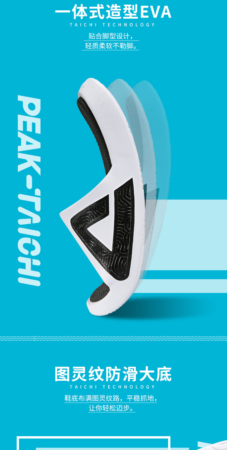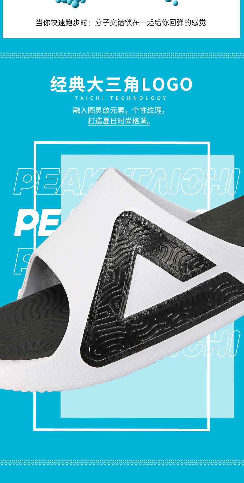 这款PEAK 匹克 态极,男女款拖鞋,采用全掌态极中底,自适应黑科技,可软可弹,换弹舒适;一体式造型EVA,贴合脚型;图灵纹防滑大底,平稳抓地。专属太极科技标识,辨识度高,让人过目不忘。