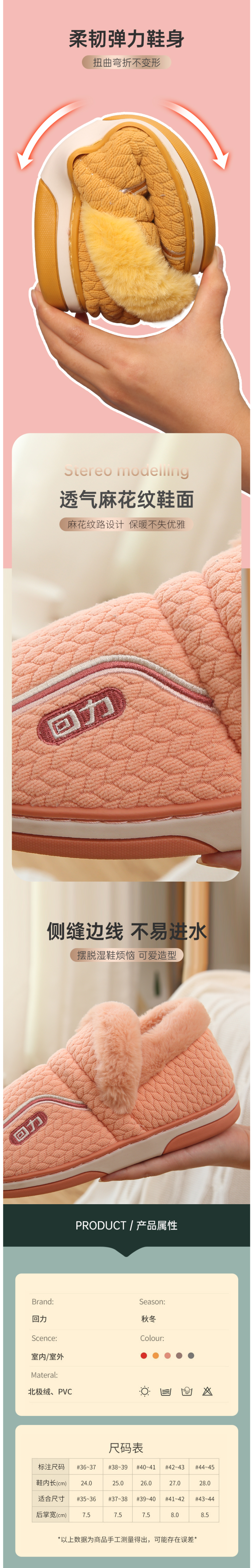 这款回力男女包跟棉拖鞋,是2020年的冬季款,鞋面使用时尚亲肤的超柔鞋面,摸起来手感舒适,不易起球。内里是加厚优良法兰绒,亲肤保暖效果好。