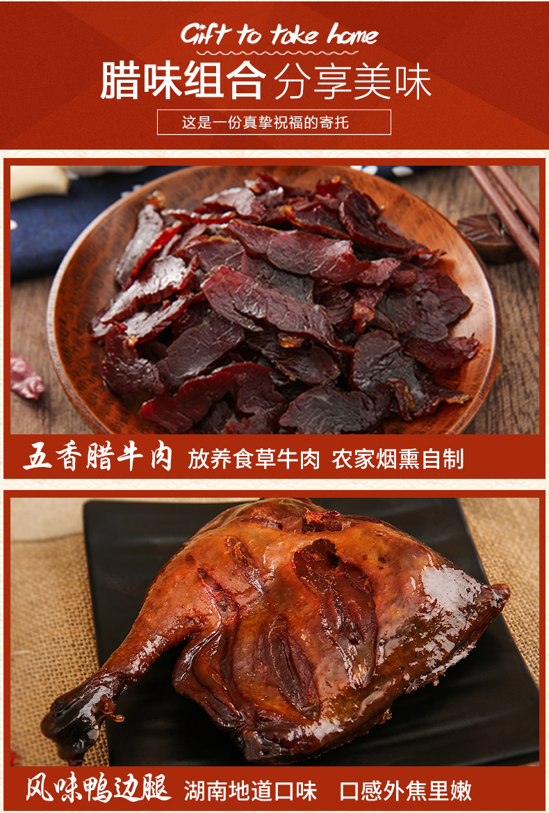 唐人神腊味年货礼盒,地道湖南特色腊味组合,单件3斤7两,套装包含新如意香肠200g、五香腊牛肉200g、广式五福香肠500g、湘式牡丹香肠200g、麻辣香肠200g、湖南腊肉200g、团圆香饼150g、风味腊鸭腿185g。