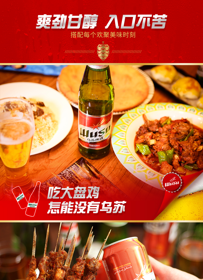 新疆夺命大乌苏,传说中的三瓶倒,必尝的“双高”啤酒。“碰出好兄弟” “夺命大乌苏” “见面,无须借口”连广告语都这么的豪爽,真是酒如人,人亦如酒。像乌鲁木齐兄弟吃肉一样的爽直、带劲儿!规格:500ml*12罐。