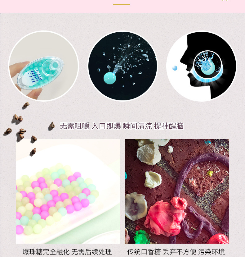 这款小林制药的爆珠清新丸与一般的口香糖、爽息丸均不同,这款是立竿见影,入口后能够瞬间清新口气,防止尴尬,苏打薄荷的清新,能持久释放清新口气,约会、开会以及抽烟后等情况均适用,便携包装。