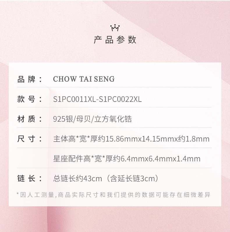 天猫周大生饰品旗舰店329元,下单立减30元,可领180元优惠券,实付119元到手,周大福出品的十二星座项链,十二星座主题设计,主体为925银材质,中间为樱花色粉嫩贝母,搭配立方氧化锆,甜美又温柔,表层加厚电镀,不易氧化褪色,周大福也是靠谱大牌,送礼也是好选择。