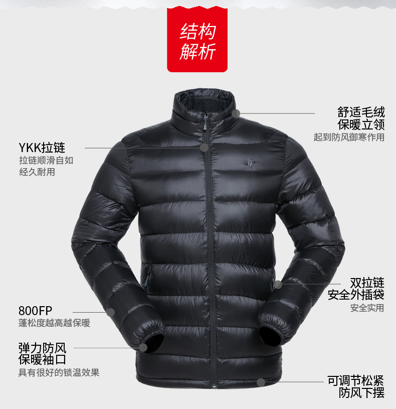 「鹅绒」800蓬鹅绒成本约是普通鸭绒的10倍,没有鸭毛的腥味,保暖效果更好:「125克 800蓬鹅绒」≈「166克 700蓬普通鹅绒」≈「237克普通鸭绒」,可以穿的又轻又暖。