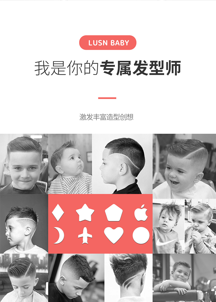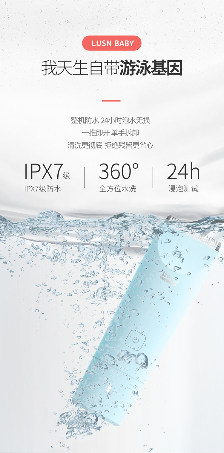 理发器采用IPX7级防水技术,全身可水洗,清理方便。理发器配件丰富,不仅小朋友可用,全家人都能使用理发,更为实用方便。
