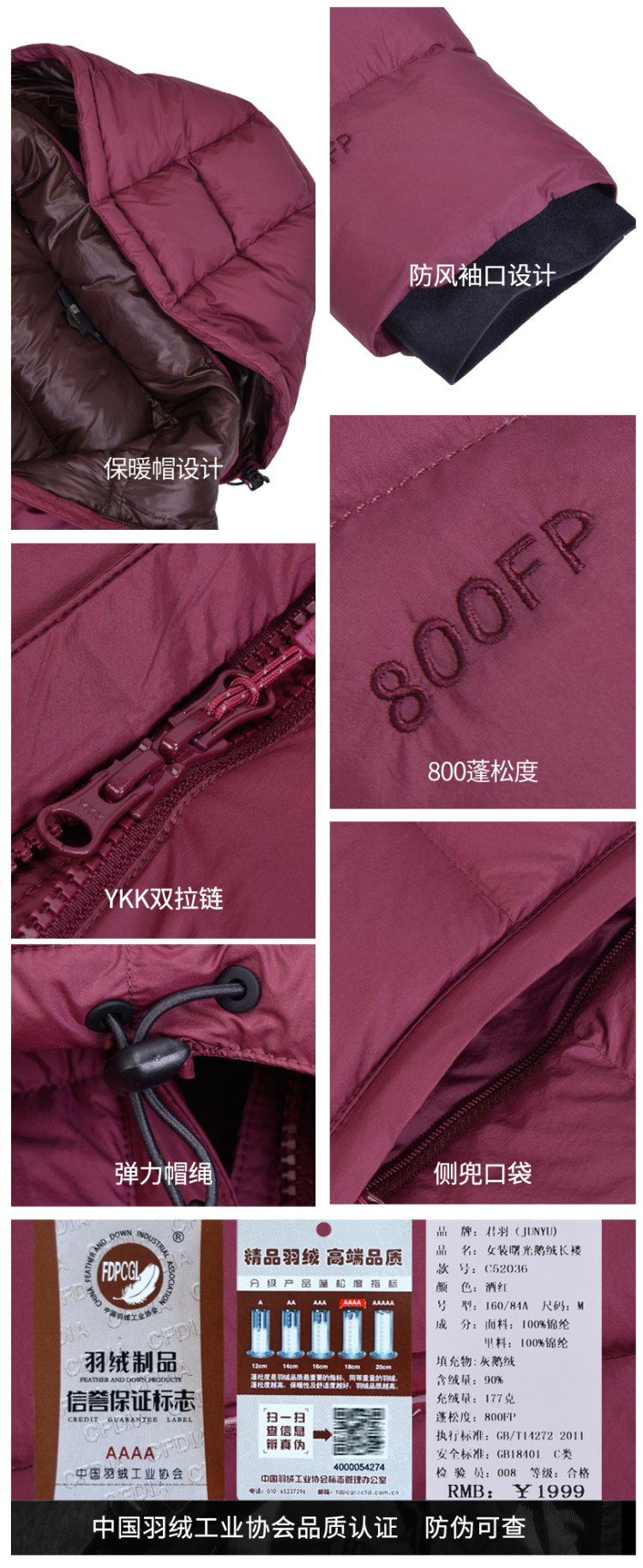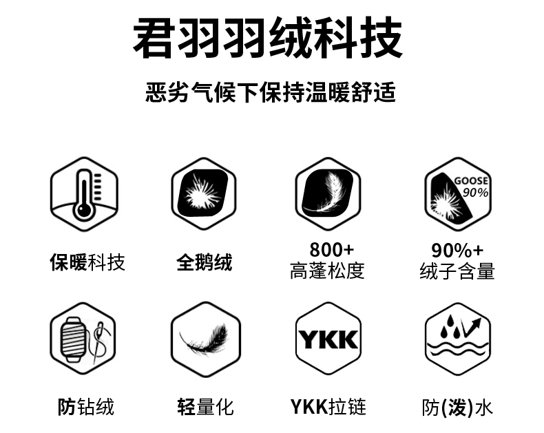 「鹅绒」800蓬鹅绒成本约是普通鸭绒的10倍,没有鸭毛的腥味,保暖效果更好;「177克 800蓬鹅绒」≈「229克 700蓬普通鹅绒」≈「327克普通鸭绒」。