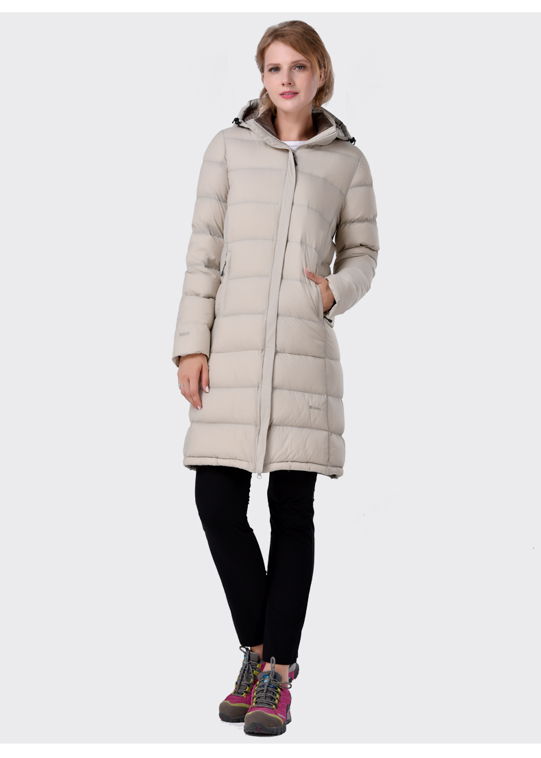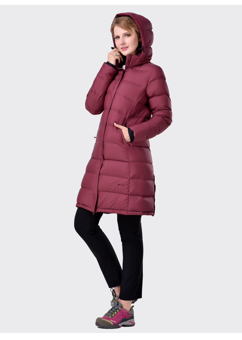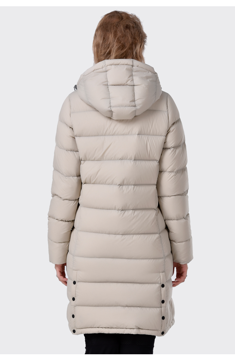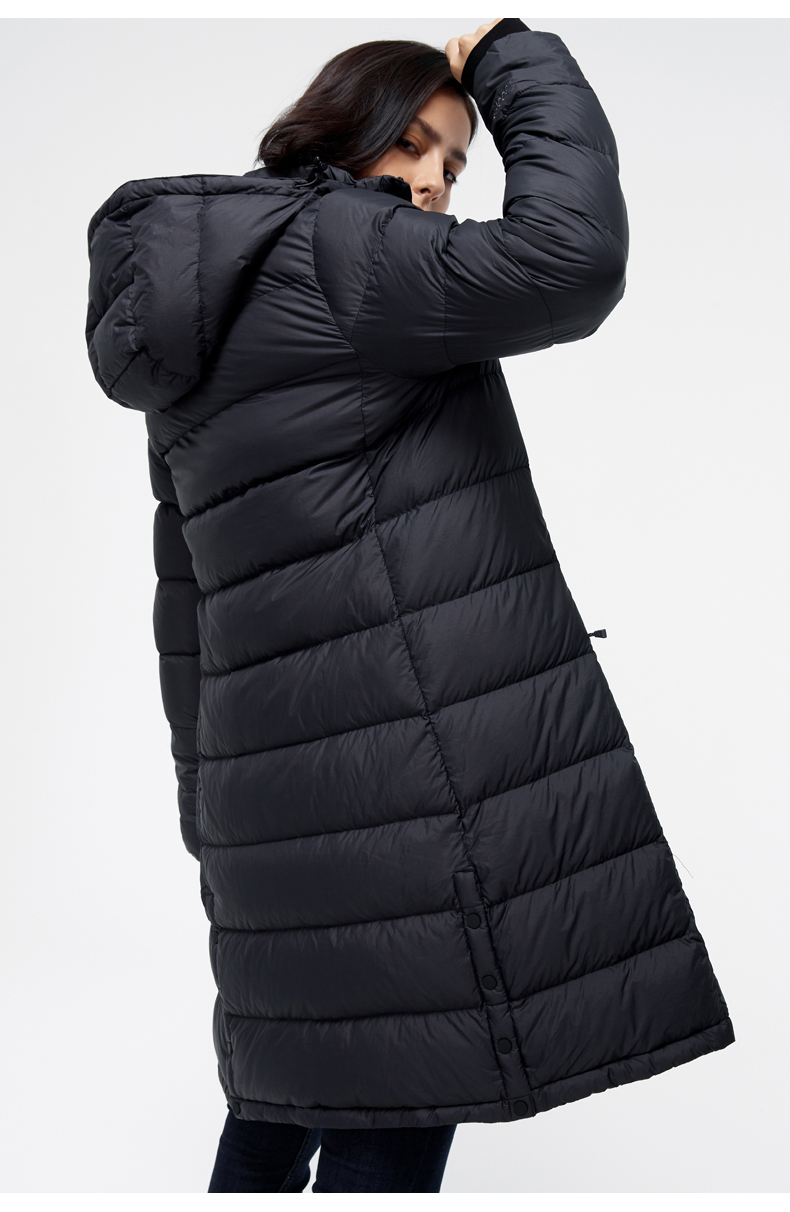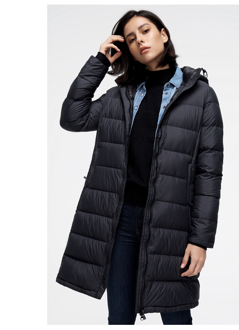 君羽曙光是中长款女士羽绒服,填充800蓬90%鹅绒,充绒量177克(M码),属于中等厚度,日本东丽20D尼龙面料。直筒款式,不挑身形都能穿,长度过臀到大腿中间,适合0℃到-15℃穿着。