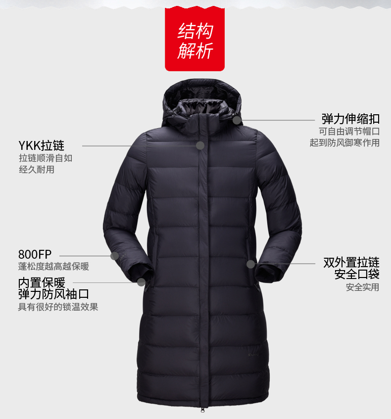 在款式和细节方面,这款羽绒服的帽子是3D全视角风雪帽,可根据需求拆卸;双层弹力防风袖口,保暖不灌风,冷了也可把手缩进袖口里;左右两个插袋和双头主拉链都是YKK的,可上下双开。