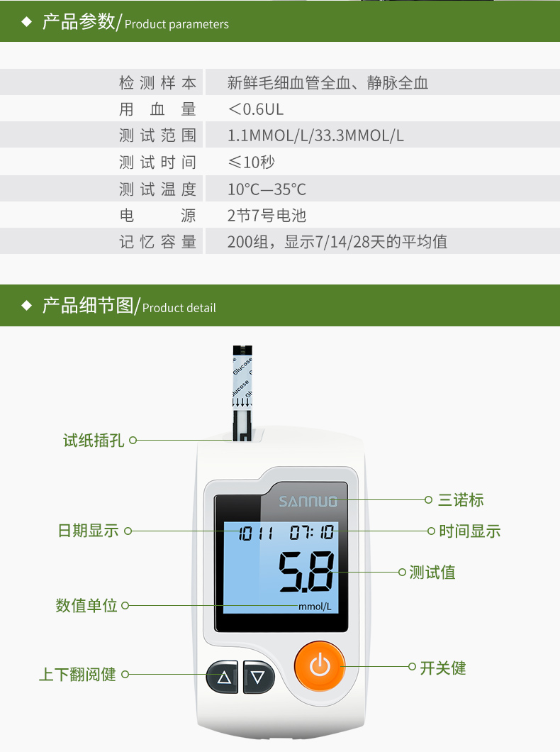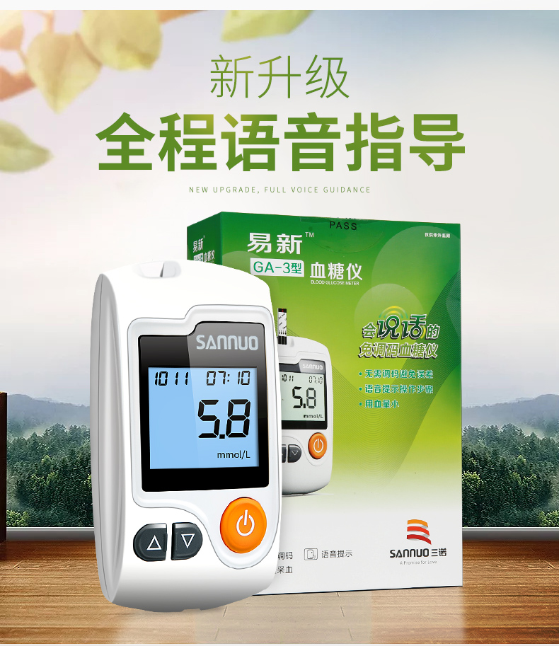 三诺血糖仪是三诺生物传感股份有限公司推出的血糖监测产品,以准确、简单、经济的特点,为快速增长的糖尿病患者人群提供了性价比优良的血糖监测工具。