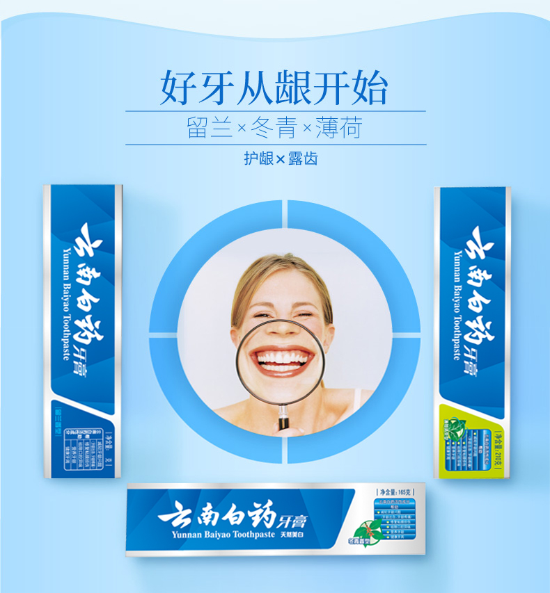 这款云南白药 牙膏 全家福6支套装,包含激爽薄荷105g、冰凝薄荷105g、薄荷香型100g、留兰香型 100g、清新晨露100g、冬青香型105g。六种香型,清口气,去牙渍,缓解口腔问题,持久清新,加倍呵护,健康口腔。