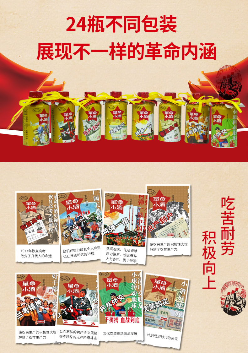 天猫泸州老酒坊旗舰店368元,可领200元优惠券,实付168元到手;泸州老酒坊旗舰店出售,品质有保证,革命版系列,岁月新版,取材自泸州老窖基地的红糯高粱,继承了泸州老窖白酒精髓,经老窖窖池采古今结合之酿造工艺酿造而成,酒色清亮透明、酒质醇香绵甜、酒香浓香馥郁。规格:118ml*24瓶,45度浓香型,适合聚会时饮用,增添氛围,一餐一瓶刚刚好。