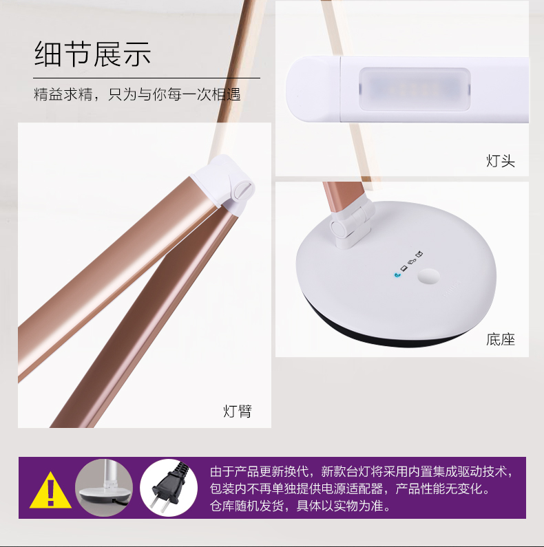 =99元 到手价,这款飞利浦led护眼台灯,折叠式结构,造型上比较简约,用铝合金材质制成,质感强颜值高,可180度旋转灯头,可作为宿舍的书桌灯或者床头灯使用。